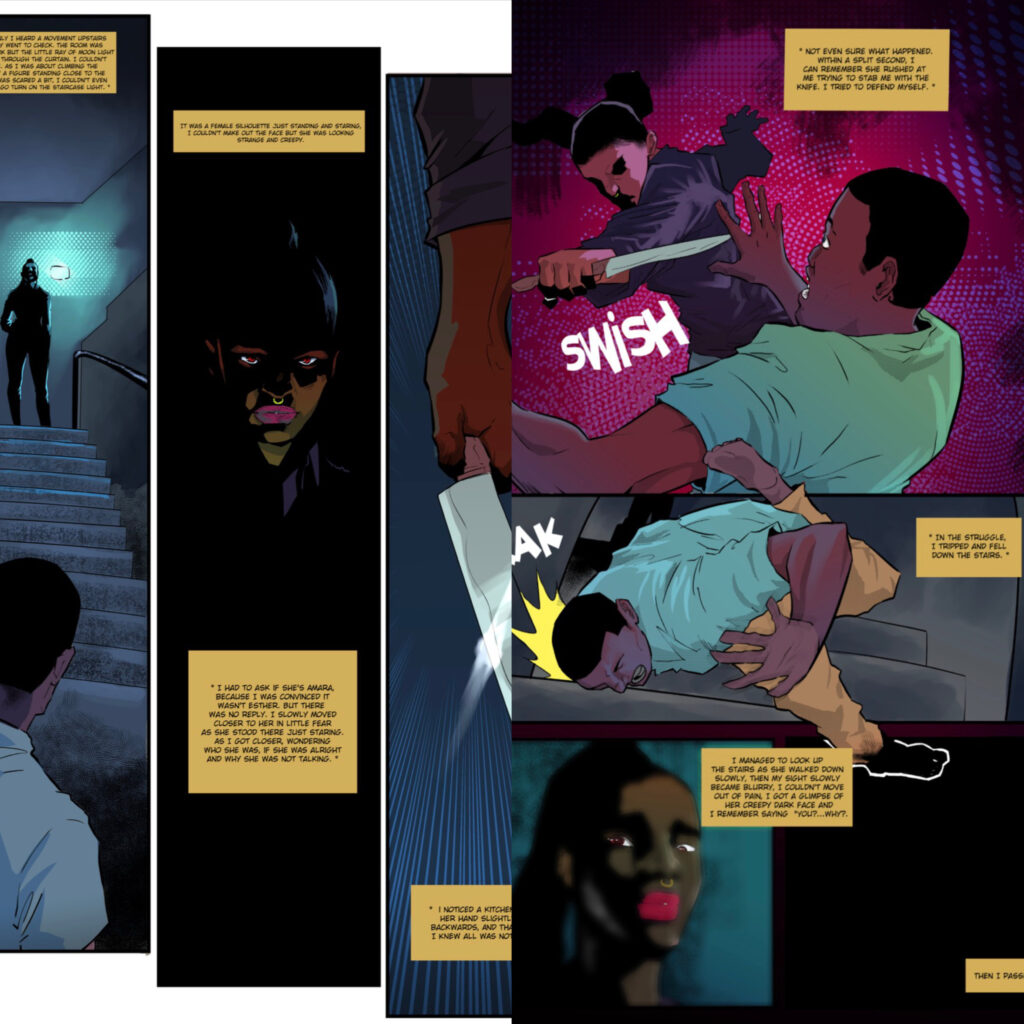 The artwork fits the psychological-thriller genre perfectly. Character expressions, especially Nufi’s fear and Esther’s emotional strain, feel authentic and intense. The panel flow is smooth, helping anchor readers during dialogue-heavy moments while punching hard during action beats.
