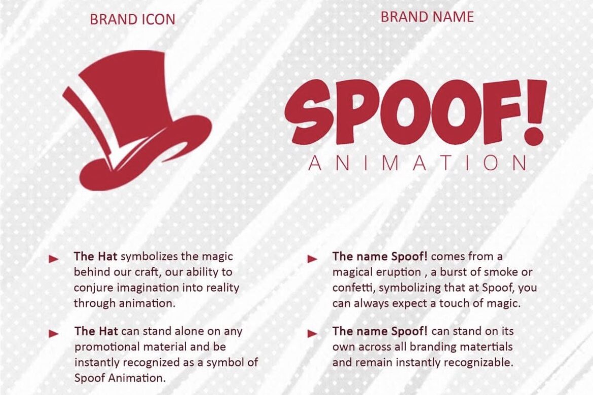 At the center of this identity is the Hat, now the studio’s brand icon. The hat symbolizes magic, imagination, and transformation, the idea that Spoof can conjure entire worlds from nothing but ideas and skill. Designed to stand alone or alongside the brand name, the hat is instantly recognizable and versatile across platforms.