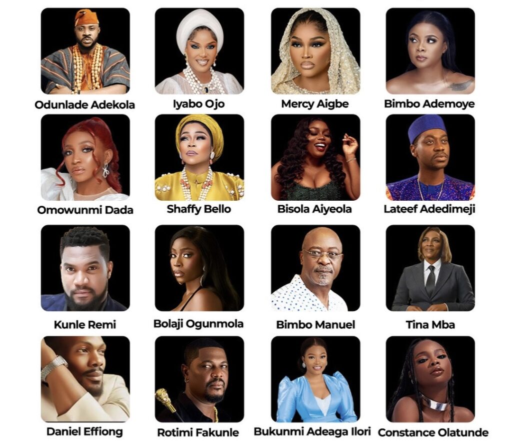 Odunlade Adekola, Iyabo Ojo, Mercy Aigbe, Bimbo Ademoye, Omowunmi Dada, Shaffy Bello, Bisola Aiyeola, Lateef Adedimeji, Kunle Remi, Bolaji Ogunmola, Bimbo Manuel, Tina Mba, Daniel Etim Effiong, Femi Branch, Rotimi Fakunle, Bukunmi Adeaga-Ilori, Constance Olatunde.